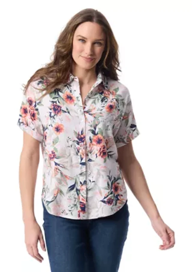 Petite Daisy Roll Sleeve Shirt
