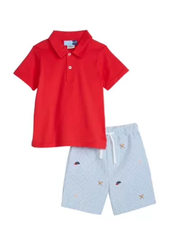 Boys 4-7 Polo Shirt and Golf Printed Shorts Set