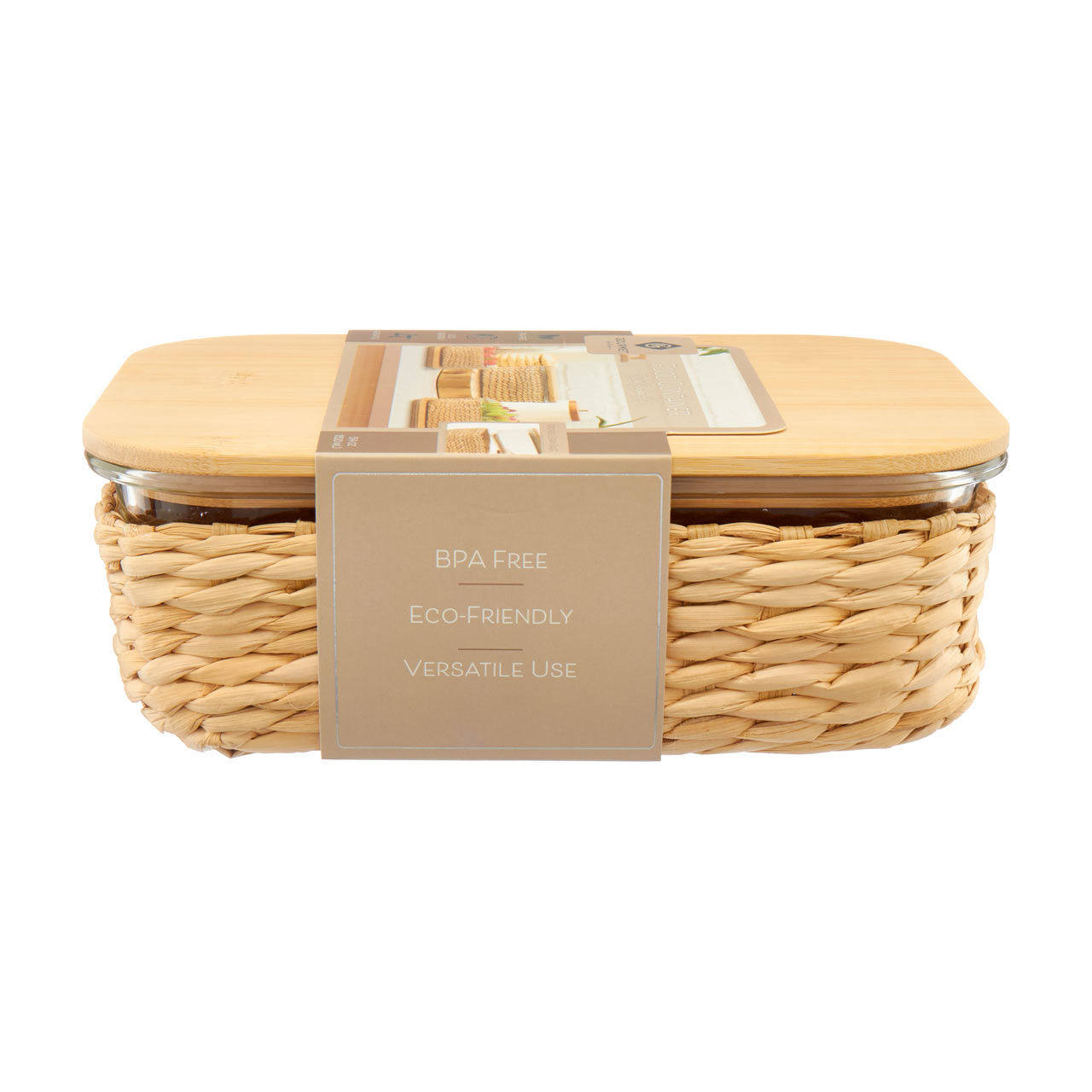 Rectangle Seagrass Glass Food Storage, 51 oz