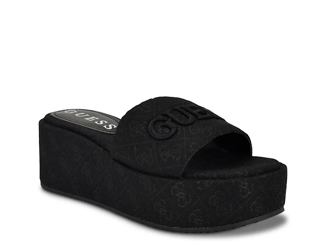 Guess Cerinna Denim Logo Block Heel Slide Sandals