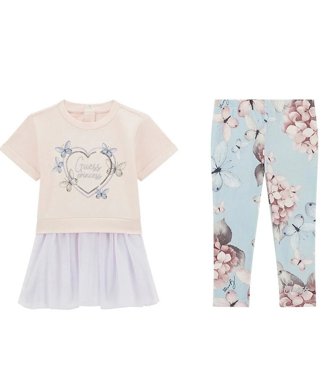 Guess Baby Girls Long Sleeve T-Shirt & Knit Denim Pants Set
