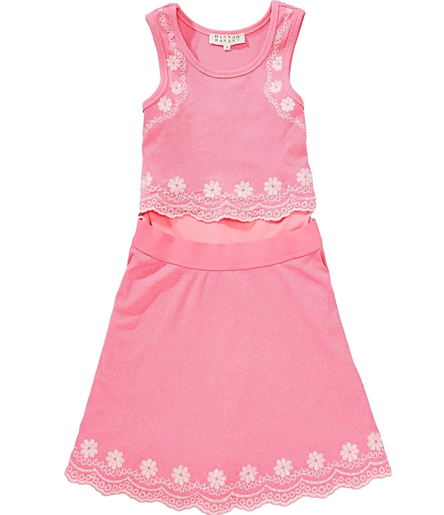 Hannah Banana Big Girls Sleeveless Floral Embroidered Smocked Waist Tank Top