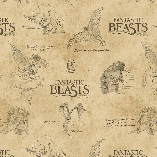 Fantastic Beasts™ Logo & Creatures Tan Cotton Fabric