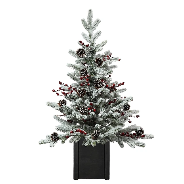 28" Pre-Lit Berry & Pinecone Flocked Artificial Wall Christmas Tree, Warm White LED Lights