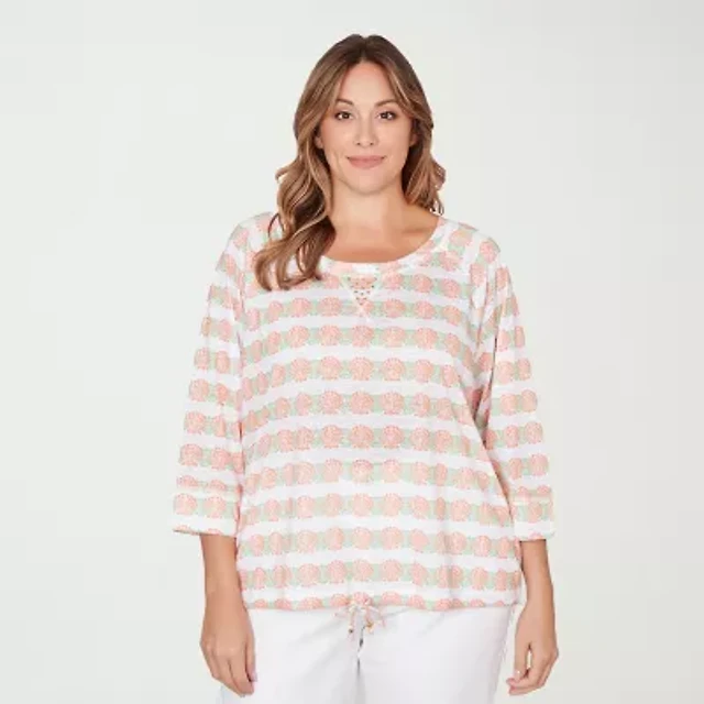 Hearts Of Palm Striped Drawstring Womens Plus 3/4 Sleeve Regular Fit Henley Shirt