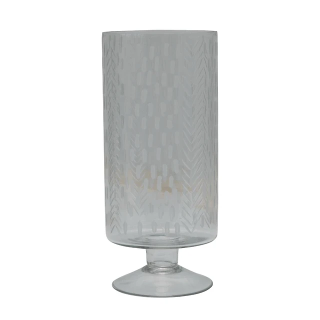 Hello Honey® 11" Glass Footed Hurricane Vase with Etched Pattern