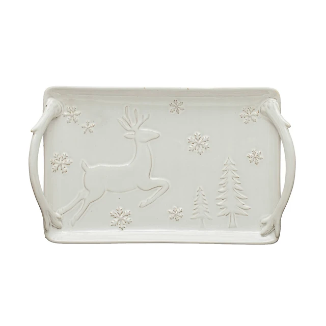 Hello Honey® 11" White Christmas Debossed Stoneware Tray
