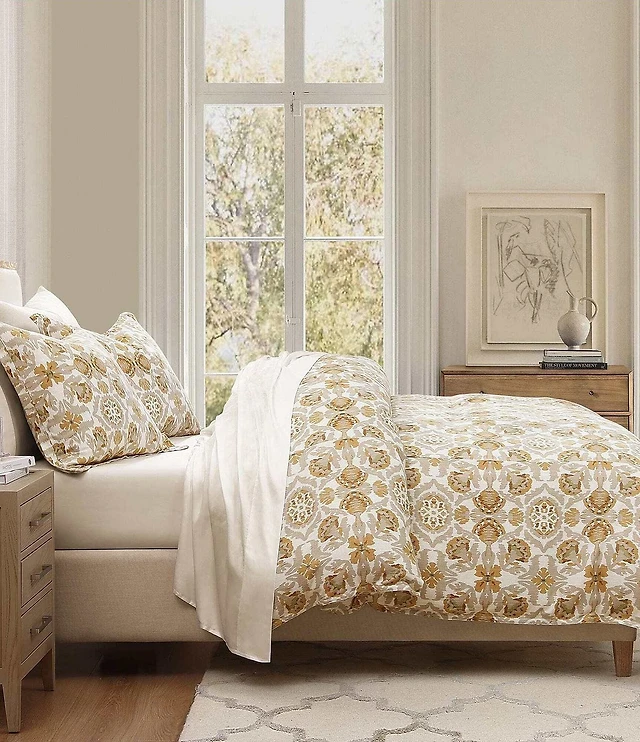 HiEnd Accents Andie Washed Linen Tuscan Marigold Medallion Pattern Floral Duvet Cover Mini Set