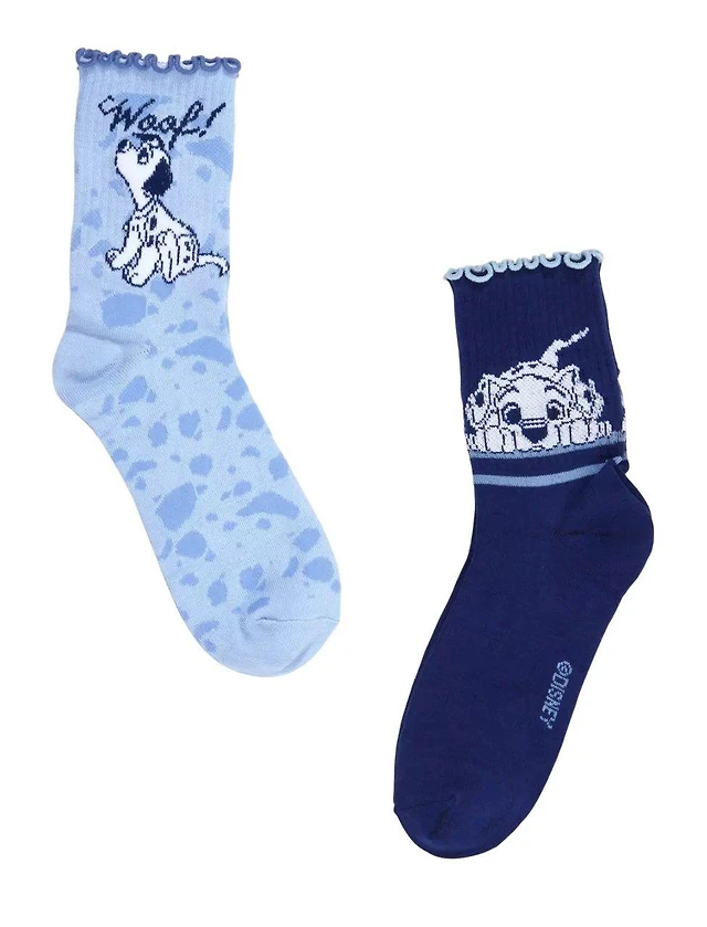 Disney 101 Dalmatians Womens Blue Crew Socks 2-Pack