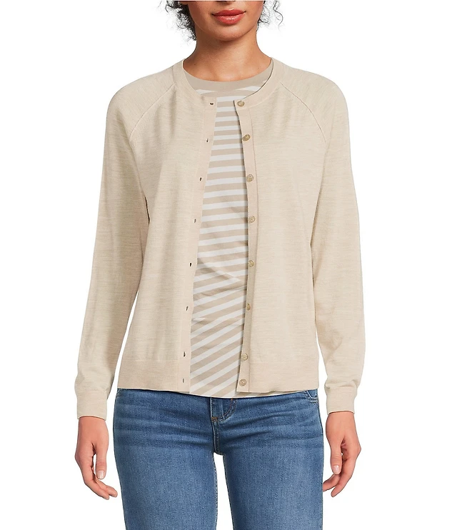 BOSS by Hugo Boss Fonami Virgin Wool Knit Crew Neck long Sleeve Cardigan