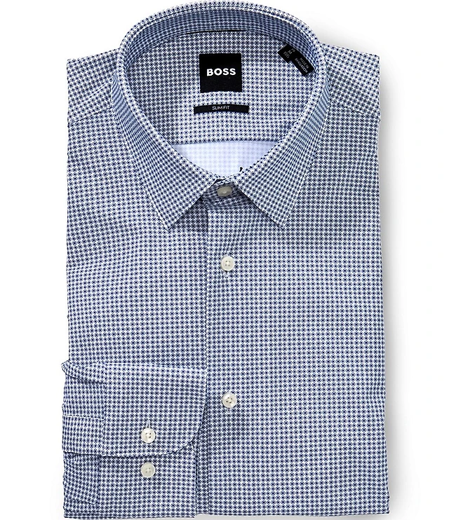 Hugo Boss Slim Fit Stretch Spread Collar Geometric Print Dress Shirt