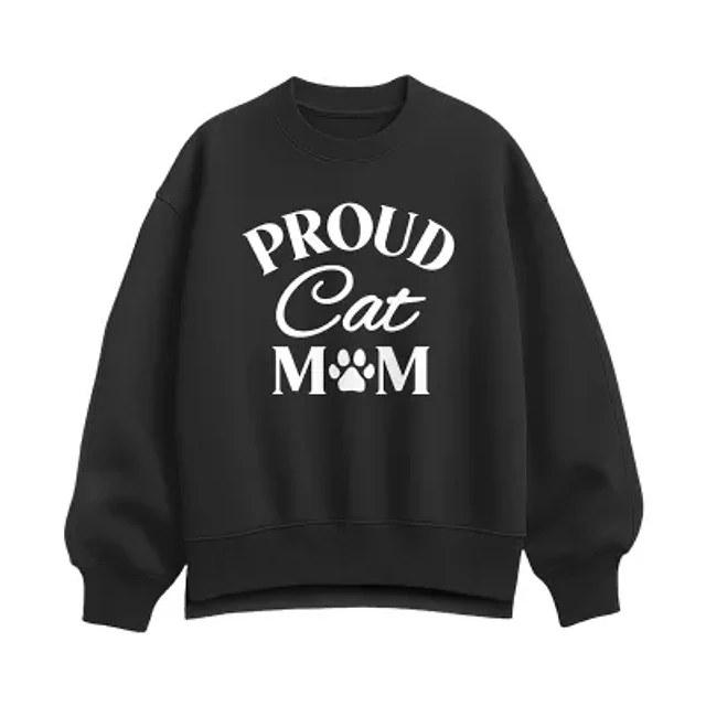 Proud Cat Mom Womens Crew Neck Long Sleeve Pullover Sweater