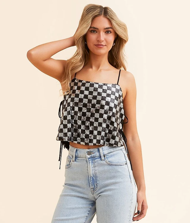 Sequin Checker Cropped Tank Top