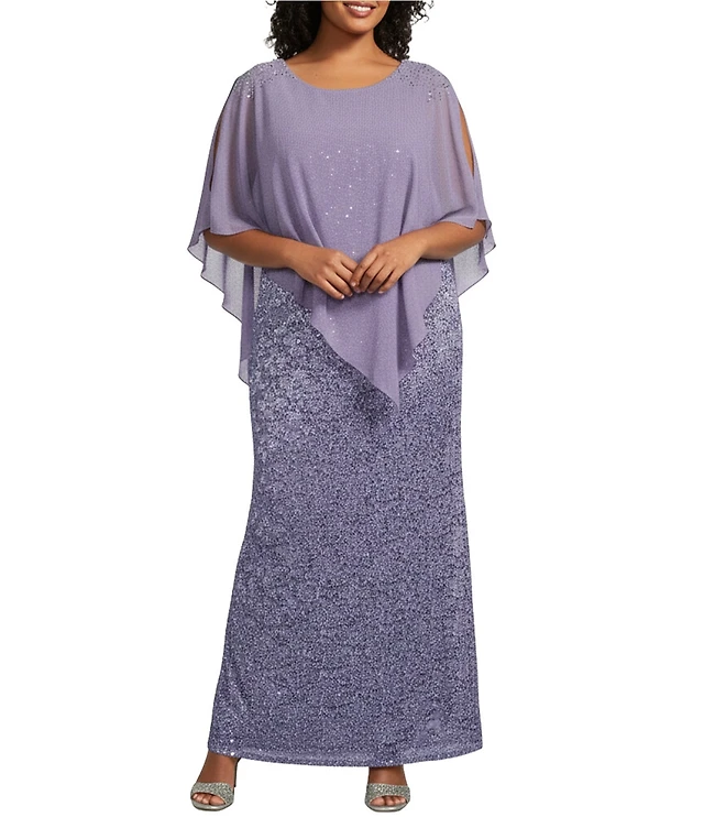 Ignite Evenings Plus Size Sequin Chiffon Overlay Dress