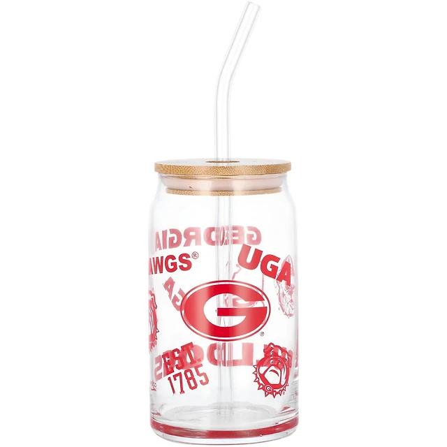 Georgia Bulldogs 16oz Can Glass with Straw