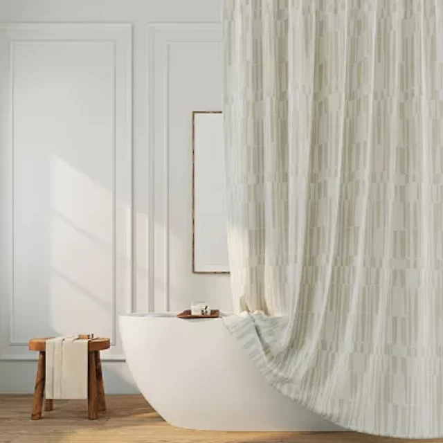 Ediz Geometric Blocks Buttonhole Shower Curtain