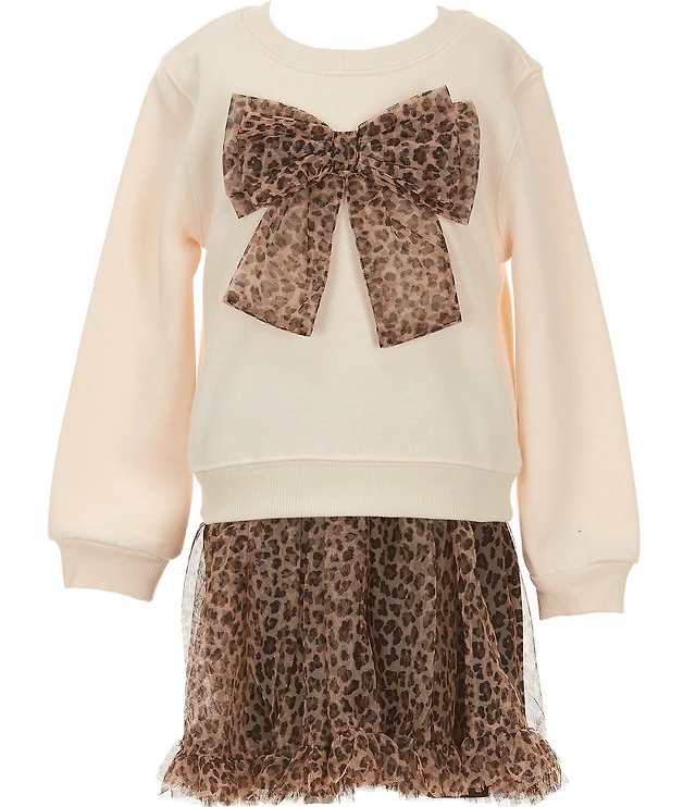 I.N. Girl Little Girls Long Sleeve Bow-Accented Top & Solid Short Sleeve Fit-And-Flare Dress Set