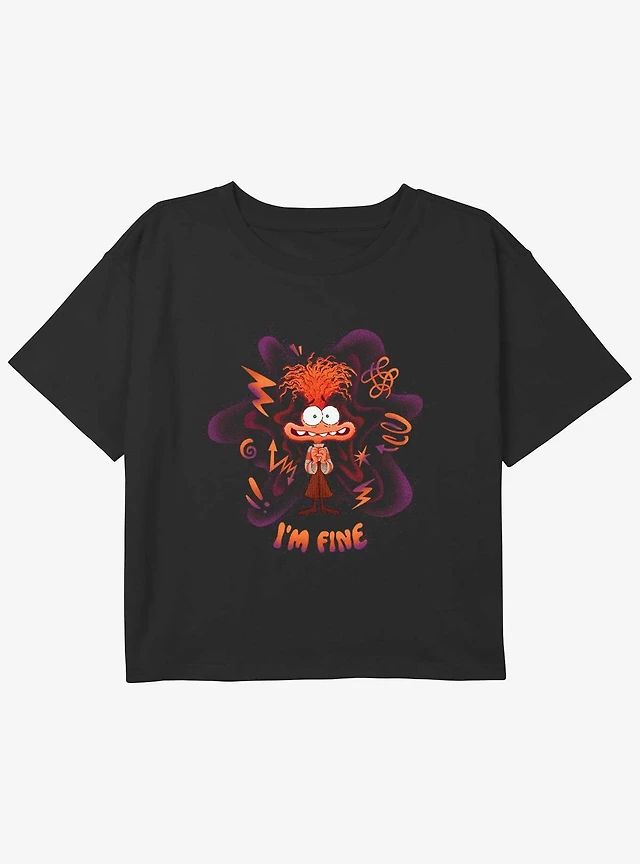 Disney Pixar Inside Out 2 Anxiety I Am Fine Girls Boxy Crop T-Shirt