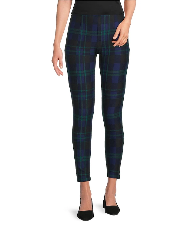 Slim Factor by Investments Ponte Knit Rawhide Plaid Print No Waist Leggings