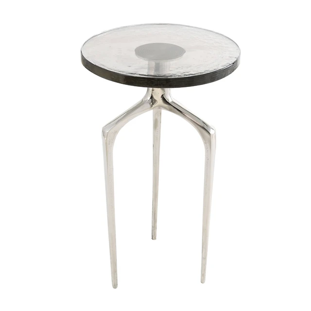 18" Silver Stainless Steel Drum Geometric Accent Table