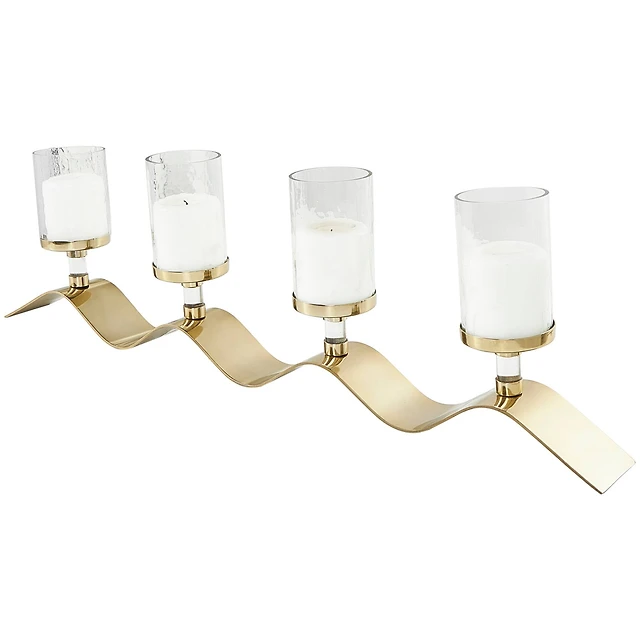 33" Gold Stainless Steel Candle Holder with Wavy Base