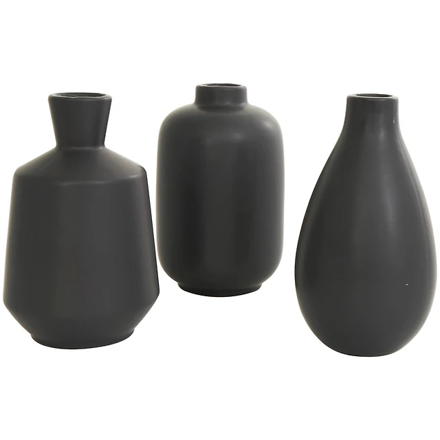 Black Ceramic Abstract Bubble Ribbed Vase Set