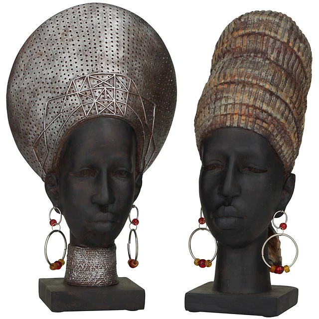 9" Black & Silver Finish Africa Inspired Woman Face Sculpture