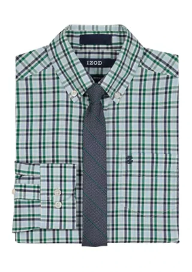 Boys 8-20 Long Sleeve Stretch Ridgewood Plaid Shirt & Tie
