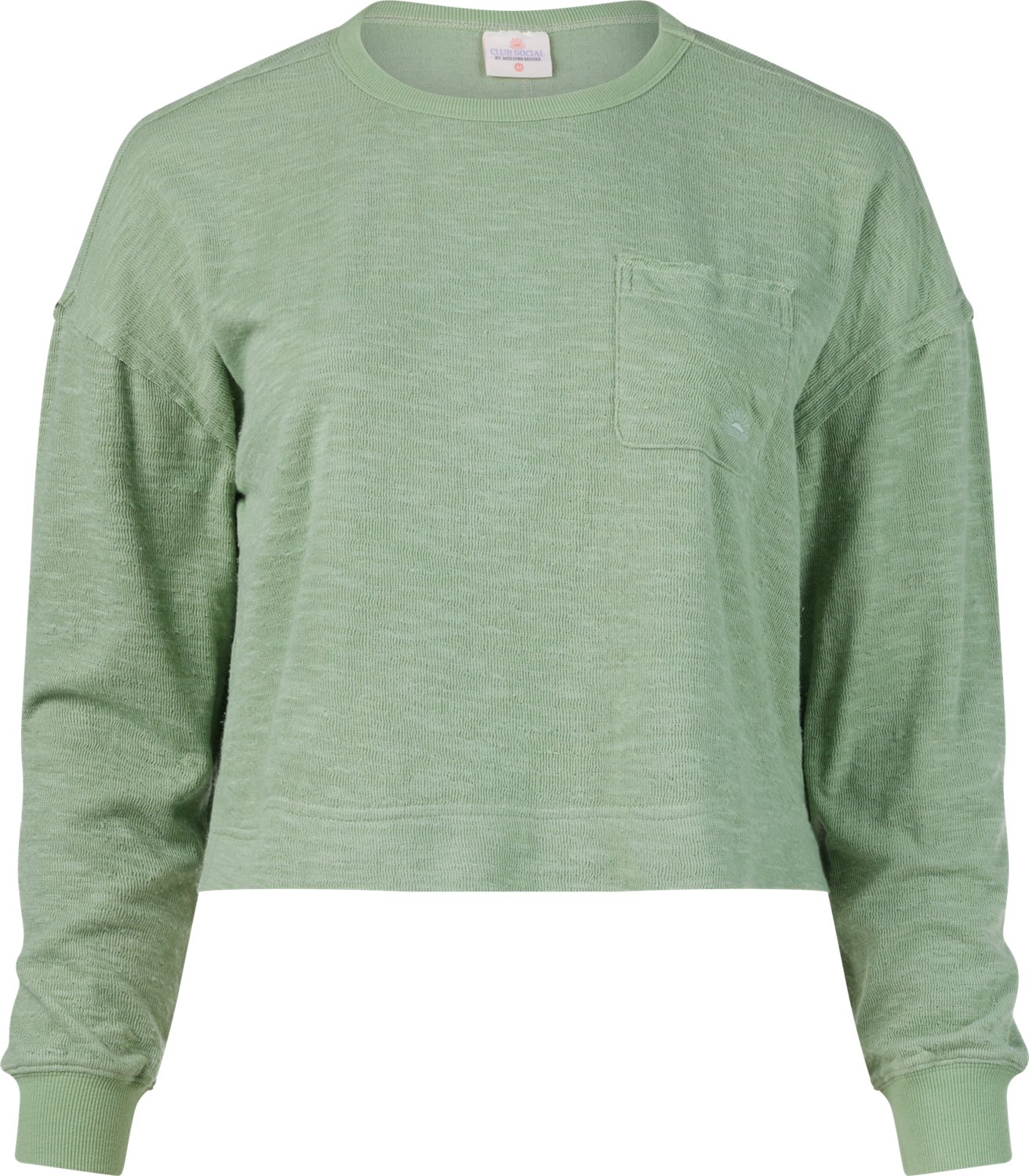 Jadelynn Brooke Women's Embossed Effortless Long Sleeve Crew Graphic Pullover