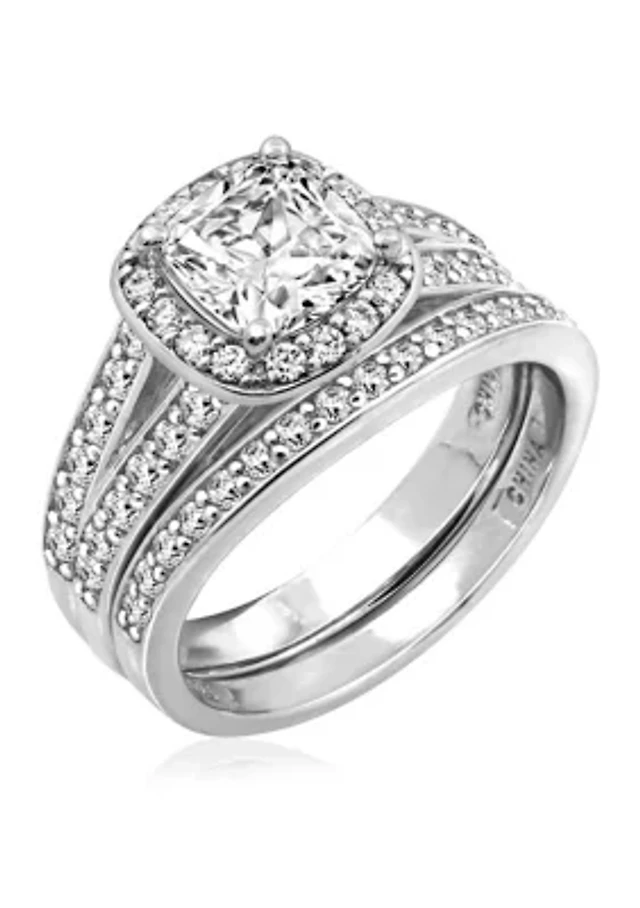 3 ct. t.w. Swarovski® Zirconia Cushion Halo Ring Set