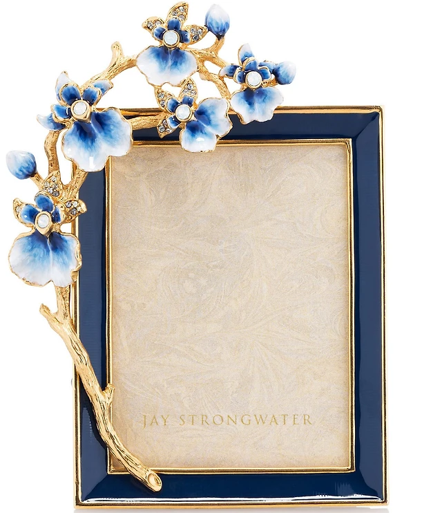 Jay Strongwater Kelsey Orchid Delft Garden Blue Photo Frame