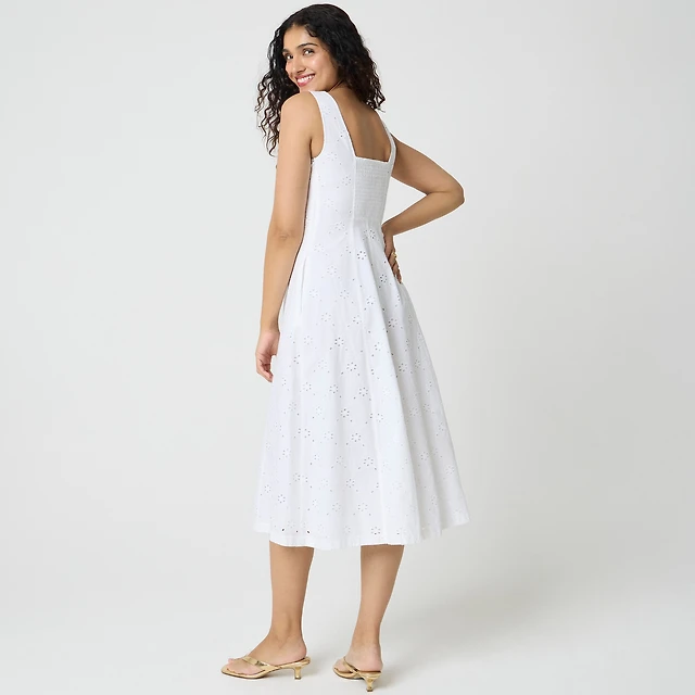 Eyelet mixed-media midi dress