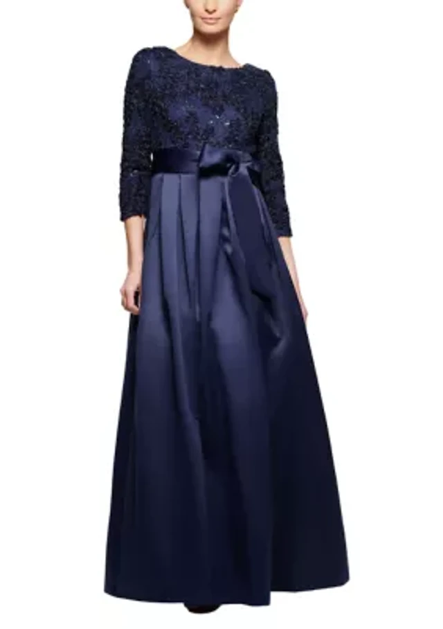 Women's Long Sleeve Shimmer Lace Gown