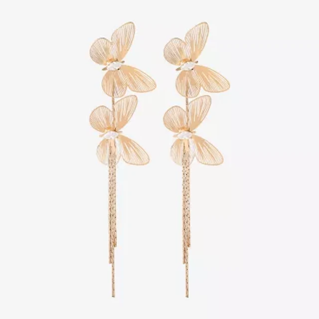 JS Jessica Simpson Gold Tone Womens Glass 48mm Butterfly Hoop Earrings