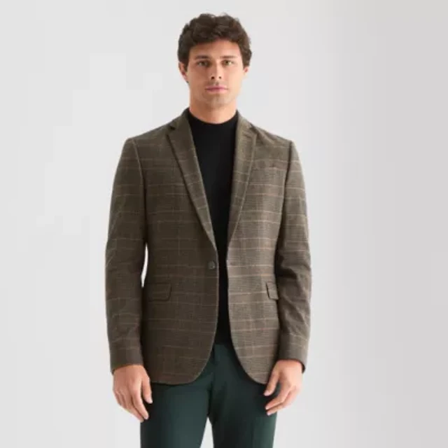 J. Ferrar Ultra Comfort Windowpane Mens Slim Fit Suit Jacket