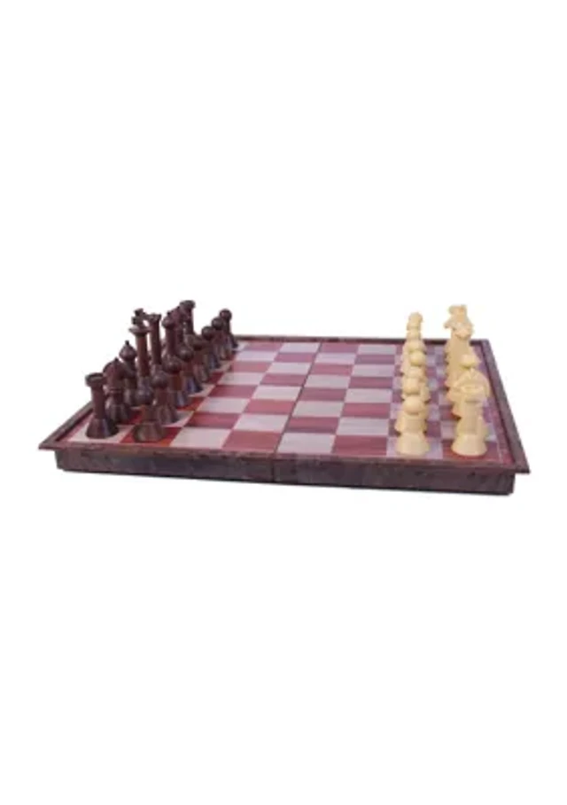 Classic Game Collection 8" Magnetic Dark Wood 3-in-1 Game Set