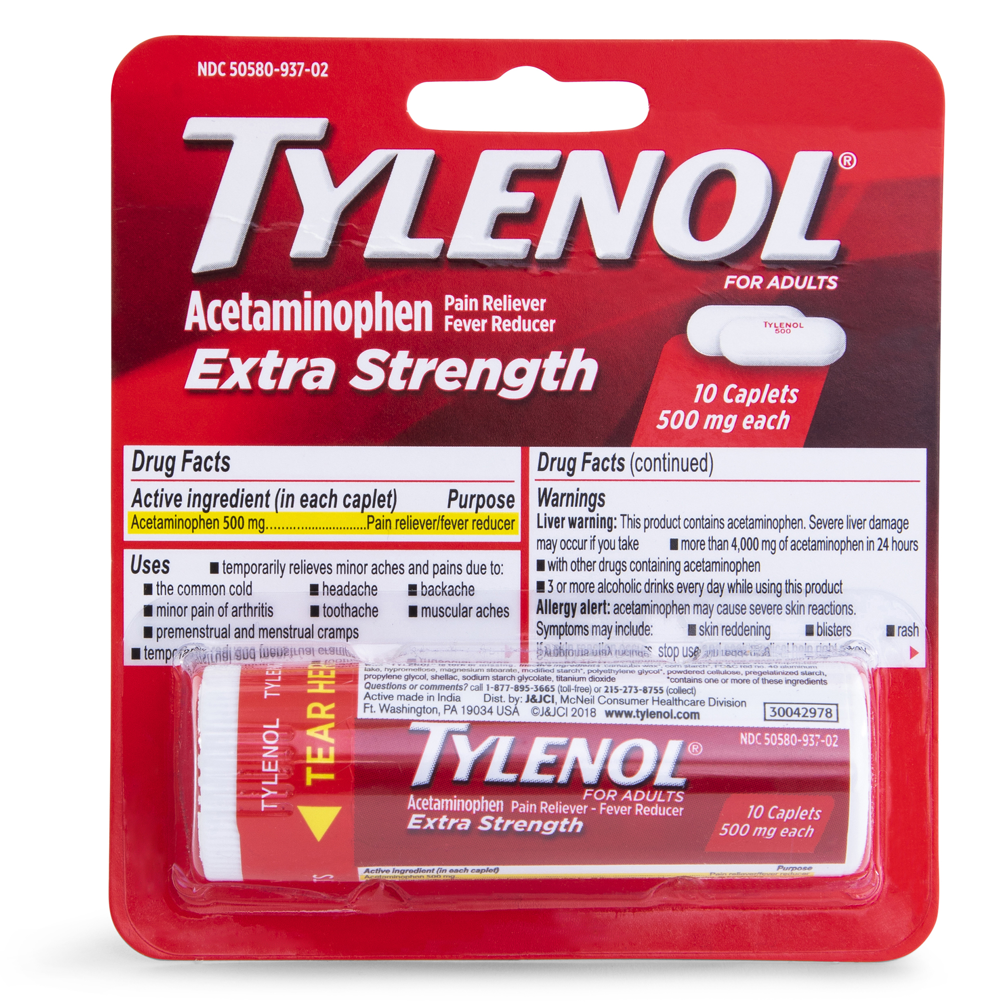 Extra Strength Tylenol® Travel Pack Acetaminophen 500Mg Caplets 10-Count