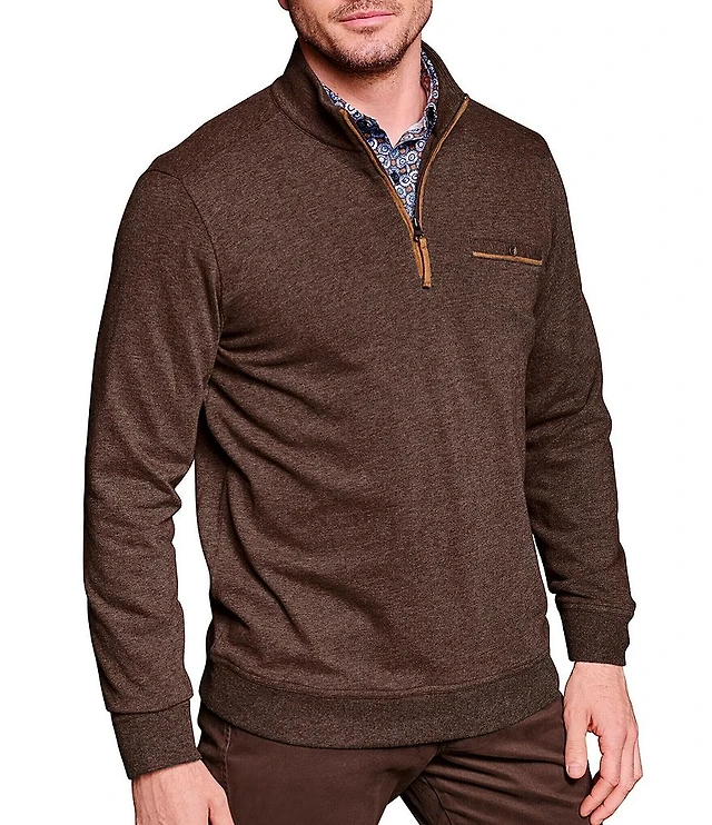 Johnston & Murphy Performance Stretch Knit Jacquard Short Sleeve Zip Polo Shirt