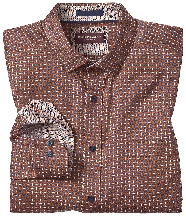 Johnston & Murphy Cross Link Print Long Sleeve Woven Shirt