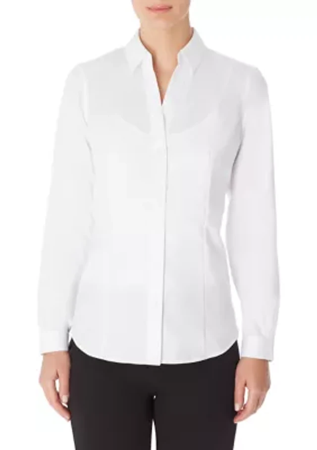 Petite Long Sleeve Eyelet Trim Button Down Twofer