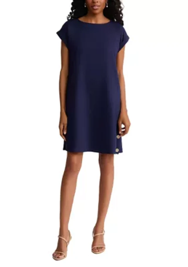 Women's 3/4 Sleeve Boat Neck Button Shoulder Top
