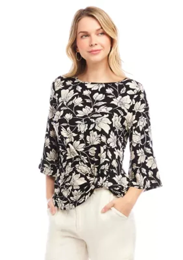 Petite 3/4 Sleeve Burnout Shirttail Top