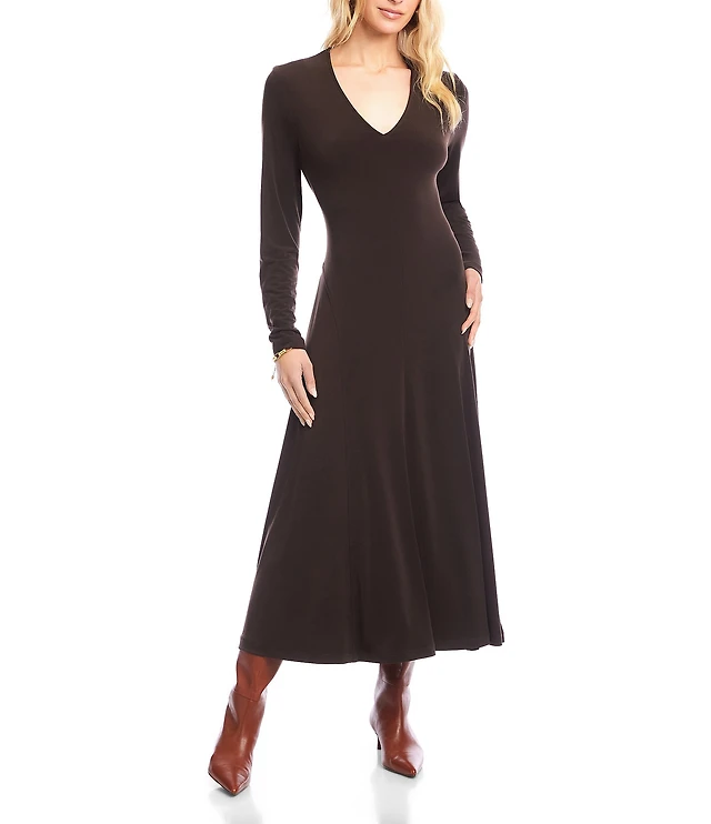Karen Kane Kate V-Neck Long Sleeve Travel Jersey Midi Dress
