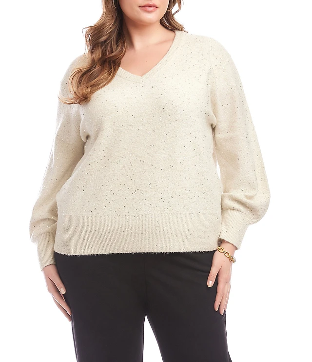 Karen Kane Plus Size Allover Sequin Knit V-Neck Long Sleeve Sweater