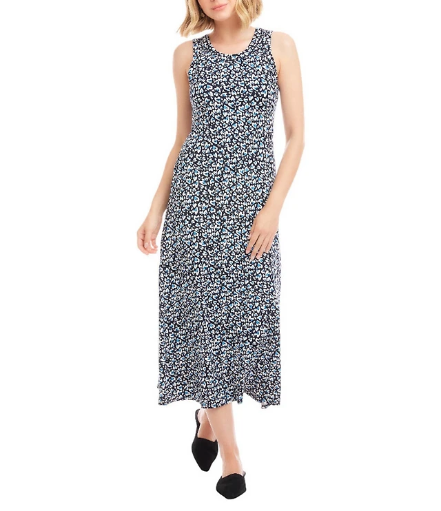 Karen Kane Knit Painted Heart Crew Neck Sleeveless Side Slit A-Line Midi Dress