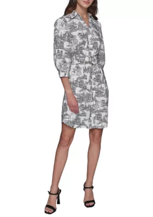 KARL LAGERFELD PARIS Sewing Theme Woven Poplin Point Collar Short Sleeve Shirt