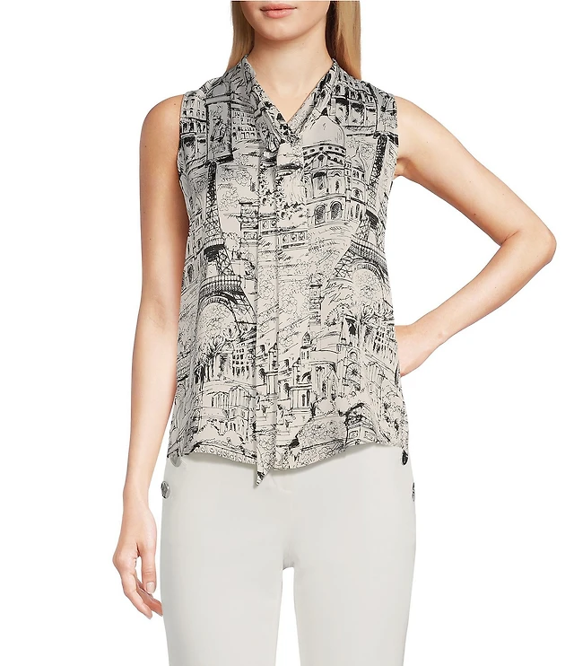 KARL LAGERFELD PARIS Organza Printed Point Collar Short Puff Sleeve Blouse