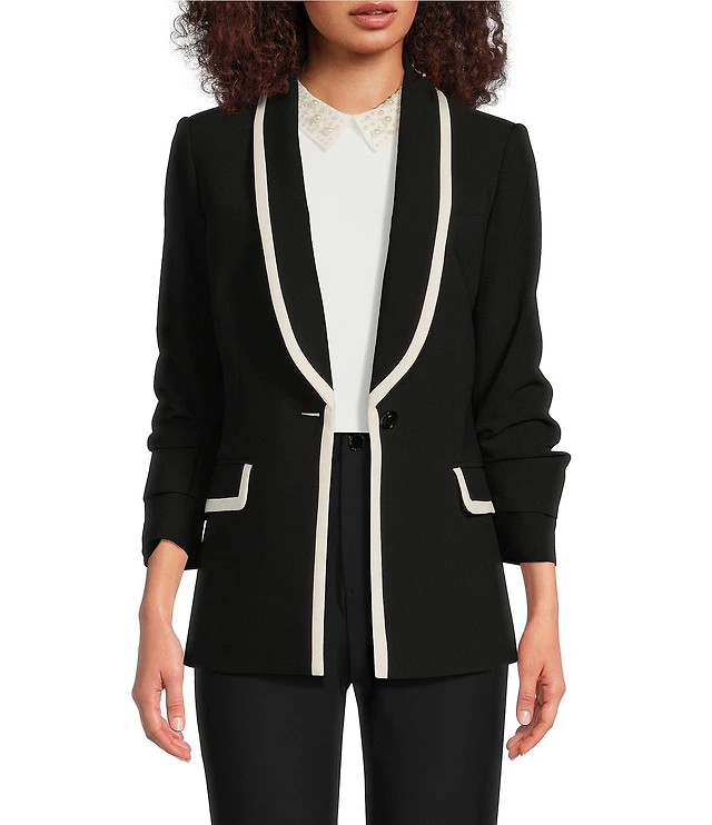 KARL LAGERFELD PARIS Stretch Contrast Trim Long Sleeve Jacket