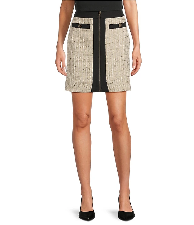 KARL LAGERFELD PARIS Coordinating Tweed Contrast Trim A-Line Skirt