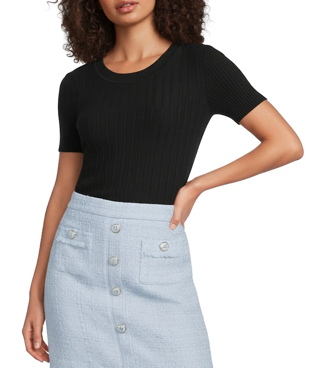 KARL LAGERFELD PARIS Ribbed Knit Round Neck Short Sleeve Top